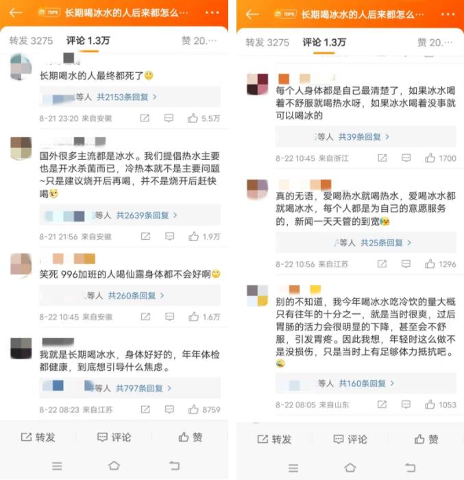 不過,最近的熱搜上,關(guān)于“夏天要不要喝冰水”這個話題,引發(fā)了網(wǎng)友熱烈的討論。話題剛沖上熱搜不久,就收到了1.3萬評論。