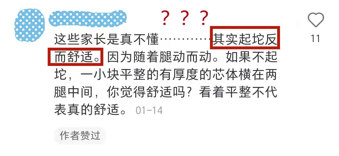 帶過寶寶的家長們都知道,紙尿褲芯體起坨,不僅會影響寶寶尿液的吸收,不平整的觸感更會讓寶寶感受到極度的不舒適!可是在TA們口中,起坨反而是舒適的保障,甚至是紙尿褲為了保證其透氣性而特別設置的部分!