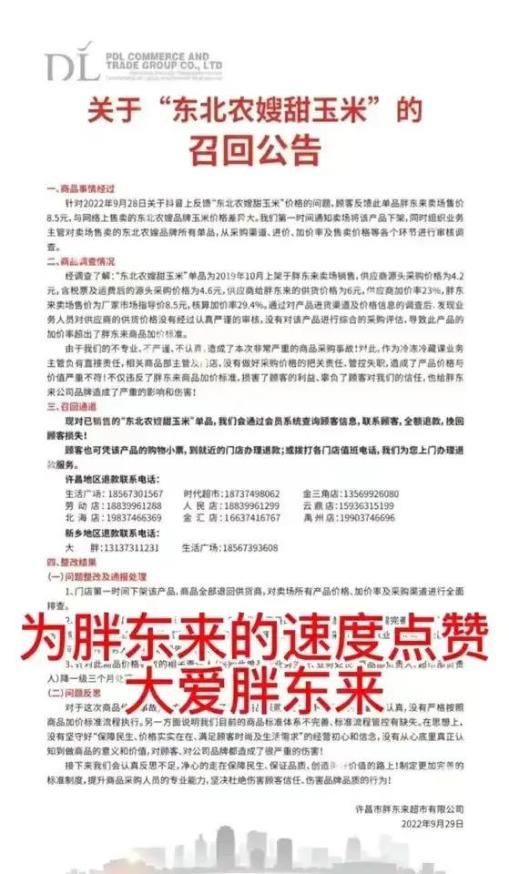 不僅將“東北農(nóng)嫂甜玉米”價格透明化,更表示,將該產(chǎn)品全部召回!
