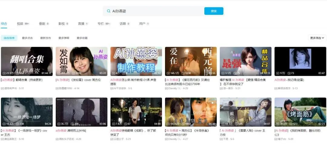在B站上,一個(gè)月之內(nèi)出現(xiàn)了上千首用孫燕姿聲音合成的AI歌曲,曲目貫穿近幾十年的流行歌曲,其中最引人注目的要數(shù)AI孫燕姿演唱的《好漢歌》。