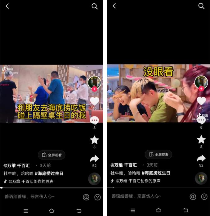 一條“社牛朋友在海底撈唱生日歌”的視頻上了熱門。