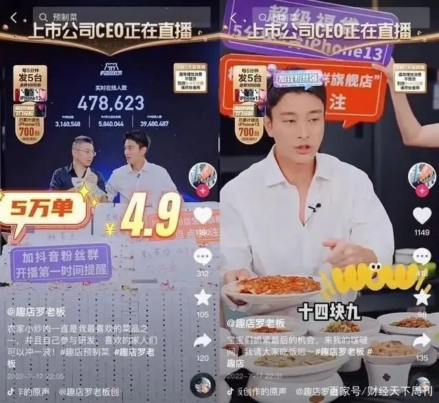 直播第二天,趣店創(chuàng)始人羅敏宣布:趣店已和一些預(yù)制菜生產(chǎn)加工工廠、農(nóng)業(yè)企業(yè)進(jìn)行深度合作,未來全力投入預(yù)制菜賽道。并且在未來三年內(nèi),要支持10萬個(gè)用戶進(jìn)行創(chuàng)業(yè),開設(shè)線下門店。