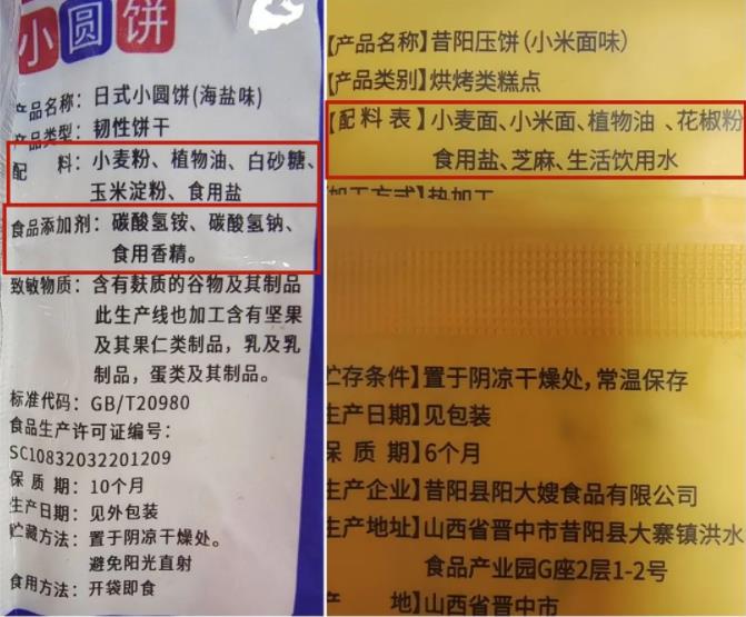 左邊的日式小圓餅,是我平時常備的貪嘴零食。作為預包裝產品,有一些食品添加劑也無可厚非;而右邊,則是【狐花花Mall】商城上由代理商提供的“昔陽壓餅”,配料表干凈清爽,就連成分中的“水”,也標明是“生活飲用水”。