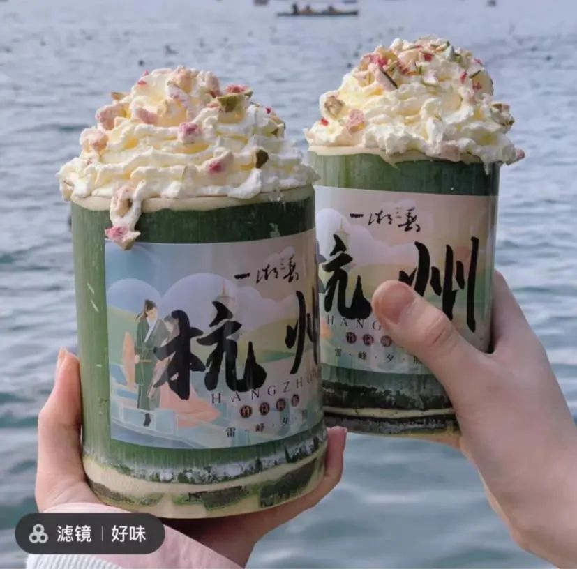 這不,今年首個(gè)流行起來的,就是“竹筒奶茶”。